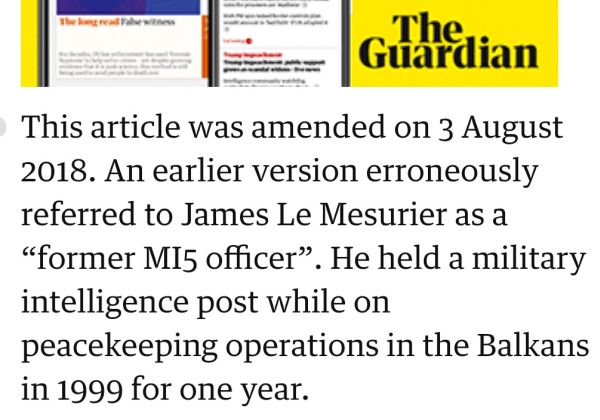 Apart from the fact that Le Mesurier was active in various areas of NATO intervention, suggesting he had links with British intelligence agencies, The Guardian itself previously stated categorically that Le Mesurier was working for British military intelligence during his time in Kosovo in 1999.