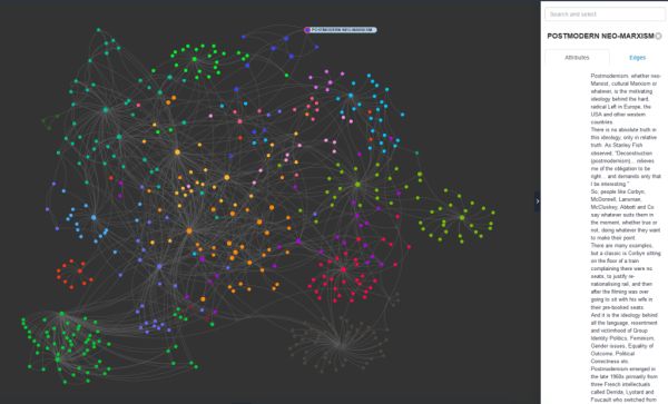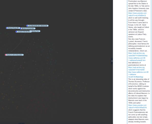The conspiratorial web does not show any tangible ties between these figures, and impugns Corbyn with vague far-right buzzwords like "global Marxism" and "postmodern neo-Marxism." The latter term is a non-existent and paradoxical concoction of ultra-conservative pundit Jordan Peterson, based on the fascist anti-Semitic myth of " Cultural Marxism," which is itself rooted in Nazi Germany's propaganda on " Cultural Bolshevism."