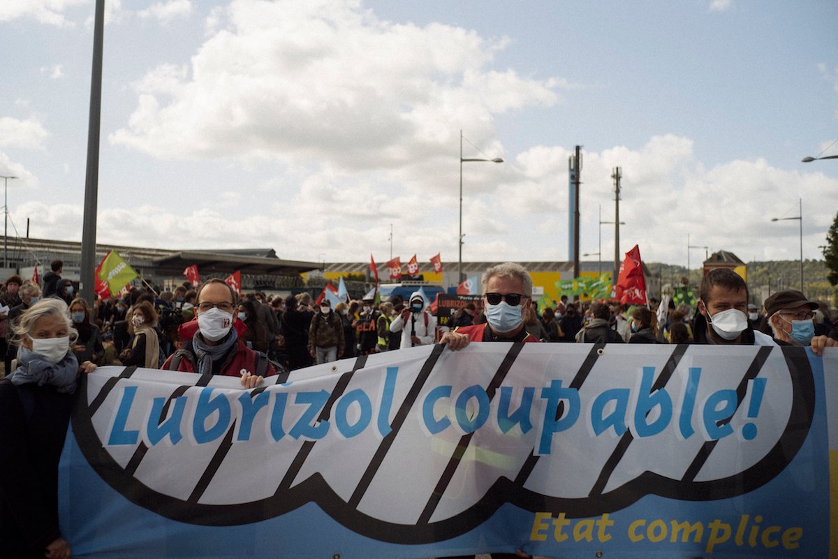 Un autre slogan revient tout le long de la manifestation : « Lubrizol coupable, État complice ! » entonné par les centaines de personnes présentes.
