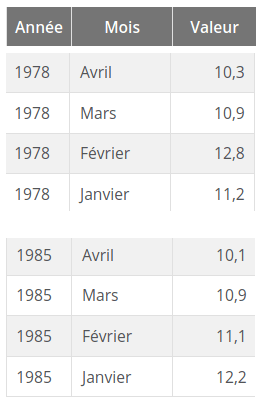 Autre vérification pertinente, si l'on compare les pics hivernaux sur janvier/février/mars de chaque année, on voit qu'entre 1975 et 2020 il y a 8 années très comparables à 2020 dont 5 égales ou pires (en rouge). Ramené là aussi en pourcentage, le pic de mars/avril 2020 est de 0,103 % de mortalité. Je vous laisse comparer :