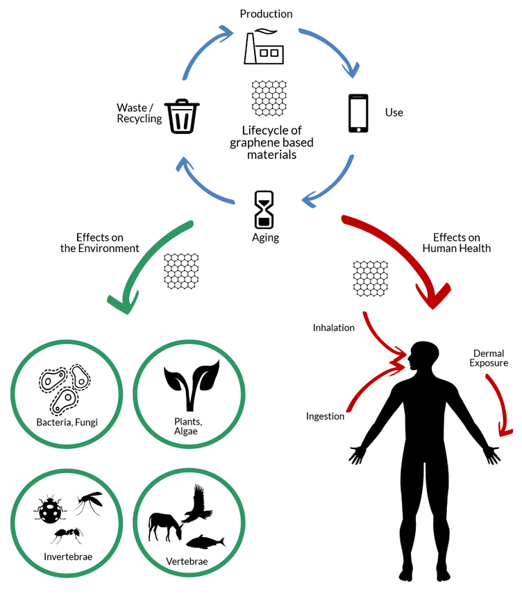 « Le graphène et ses dérivés sont présentés comme des matériaux « miracles » avec de nombreuses applications dans différents secteurs de la société, de l'électronique au stockage d'énergie en passant par la médecine. L'exploitation croissante des matériaux à base de graphène (GBM) nécessite une évaluation complète de l'impact potentiel de ces matériaux sur la santé humaine et l'environnement. Ici, nous discutons de la synthèse et de la caractérisation des GBM ainsi que de l'évaluation des risques humains et environnementaux des GBM à l'aide de systèmes modèles in vitro et in vivo dans le but de comprendre les propriétés qui sous-tendent les effets biologiques de ces matériaux ; tous les GBM ne se ressemblent pas et il est essentiel de démêler les relations structure-activité pour cette classe de matériaux. »