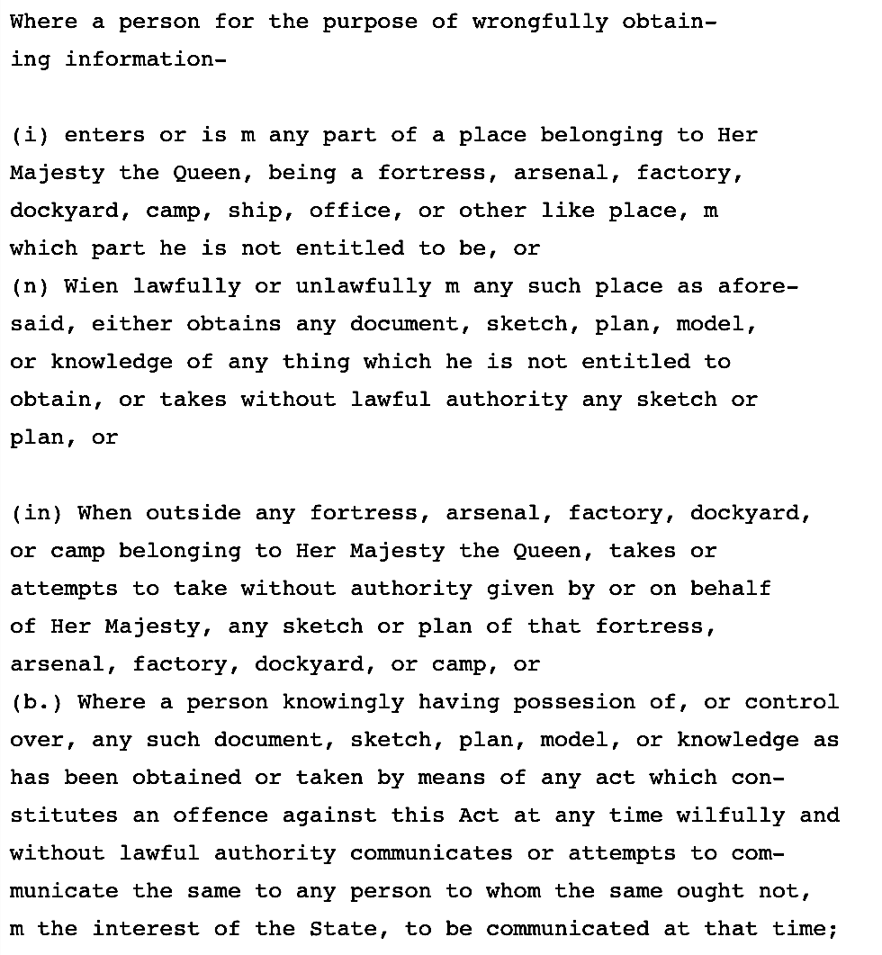 The 1889 Act "is a classic piece of Victorian legislation, clear in some ways, vague in others, but significantly more liberal than what followed," said Consortium News legal analyst Alexander Mercouris. "Section 1 of the 1889 Act is clearly concerned with spying, though the language is sufficiently vague that in theory it could be stretched to include other forms of disclosure. However I doubt that Victorian judges would have allowed it to be used for purposes other than prosecuting genuine acts of spying."