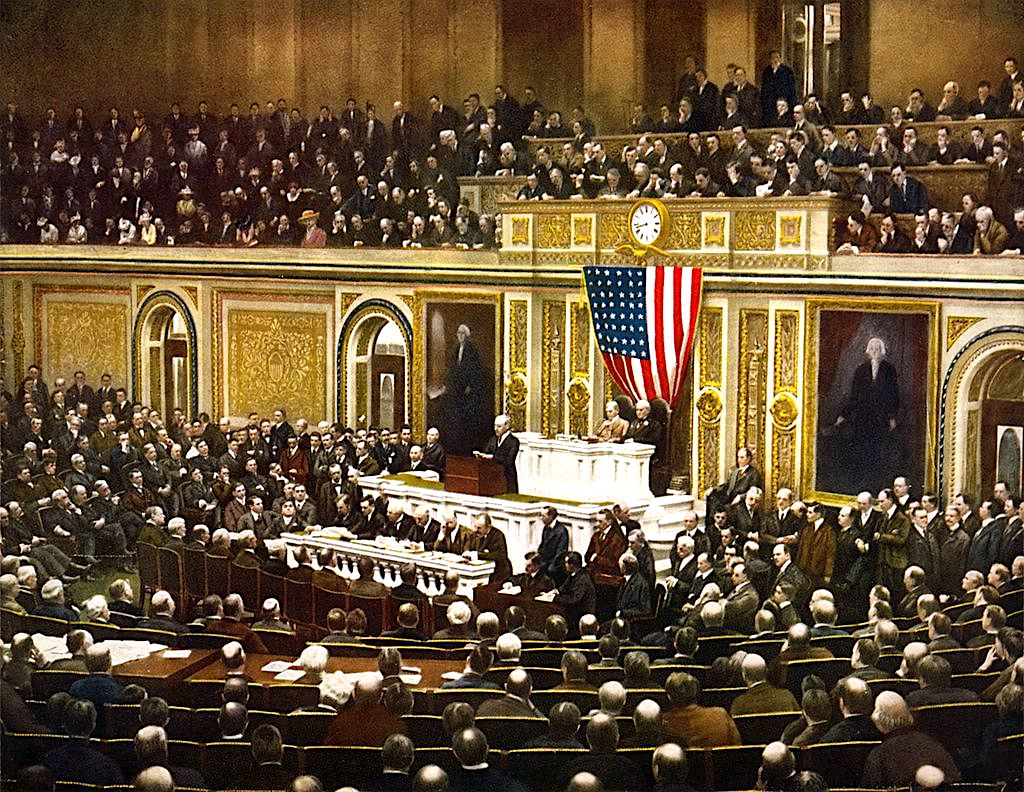 Wilson asking Congress to declare war on Germany, April 2, 1917. (Colorized Wikimedia Commons)