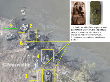 Le ministère britannique de la Défense affirme que la Russie a perdu une quantité importante de matériel et d'hommes lors d'une tentative de traversée du fleuve Seversky Donets. Toutefois, les photos aériennes publiées par le ministère ukrainien de la Défense montrent qu'environ la moitié des véhicules détruits sont des BMP-1 dotés de la petite tourelle originale pour un homme et du canon de 73 mm. On dit que la Russie n'en possède plus. Tous ses BMP-1 en service actif auraient été modernisés et sont désormais équipés de tourelles différentes, de mitrailleuses de 30 mm et de fusils plus longs. Le passage a dû donner lieu à une bataille plus importante, les deux camps ayant probablement subi de lourdes pertes. De plus, les combats se déroulent maintenant sur le côté ouest de la rivière. Les forces russes ont donc dû traverser la rivière en nombre significatif.