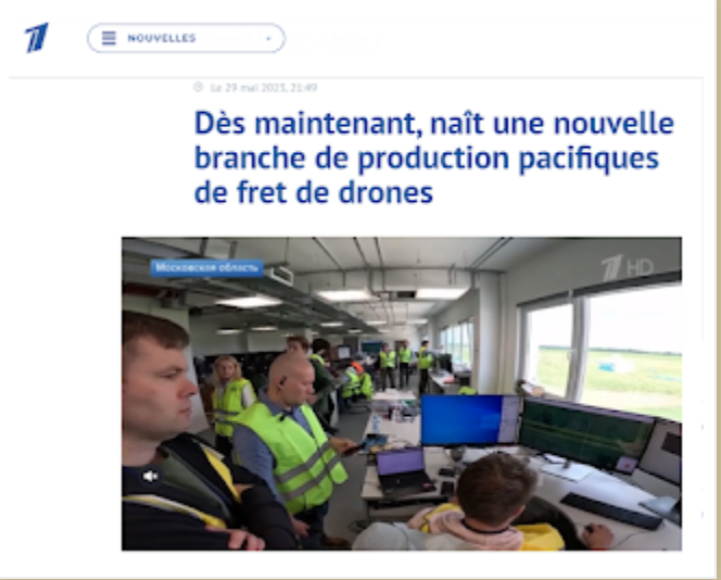 Et justement hier soir, au journal télévisé sur la Première chaîne fédérale russe, un reportage d'une extrême actualité, je dirais même presque visionnaire, nous annonce que la Russie ne devant à aucun prix être en retard dans ce monde global merveilleux des drones, prépare un nouveau service de livraison par drones :