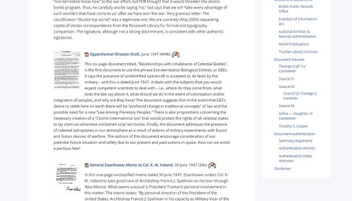 Critiquing Johnmooner-chief's article regarding a supposed "top secret" document about aliens written by Albert Einstein and J. Robert Oppenheimer
