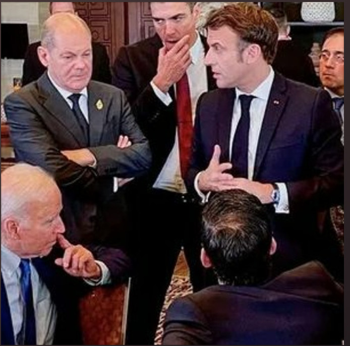 Que font nos États vassaux : ils défilent l'un après l'autre (Sunak, Scholz, Macron) devant le chef de guerre de Biden, Netanyahou en Israël. Ils disent, comme Biden, que l'heure d'un cessez-le-feu n'est pas venue?