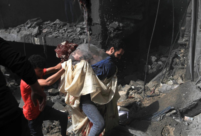 Le 10 octobre, l'armée de l'air israélienne a bombardé un immeuble d'habitation dans le quartier de Sheikh Radwan, à Gaza, tuant 40 personnes, pour la plupart des femmes et des enfants. Dans l'une des vidéos choquantes prises à la suite de l'attaque, on voit des gens crier, tenir ce qui semble être une poupée tirée des ruines de la maison, et se la passer de main en main. Lorsque la caméra zoome, on peut voir qu'il ne s'agit pas d'une poupée, mais du corps d'un bébé.