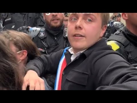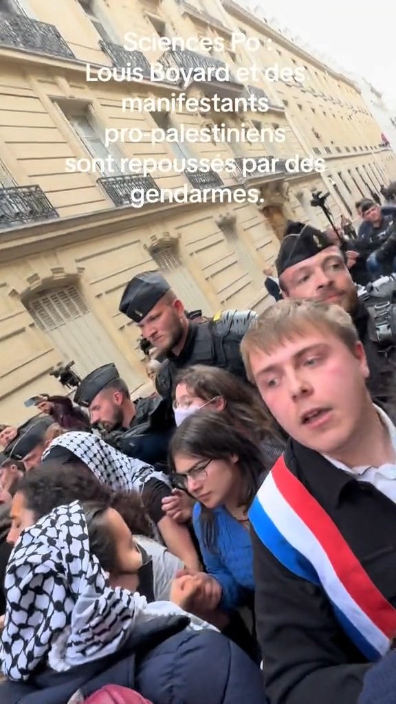 A Sciences Po Paris, Le député Louis Boyard et les étudiants repoussés par les gendarmes :