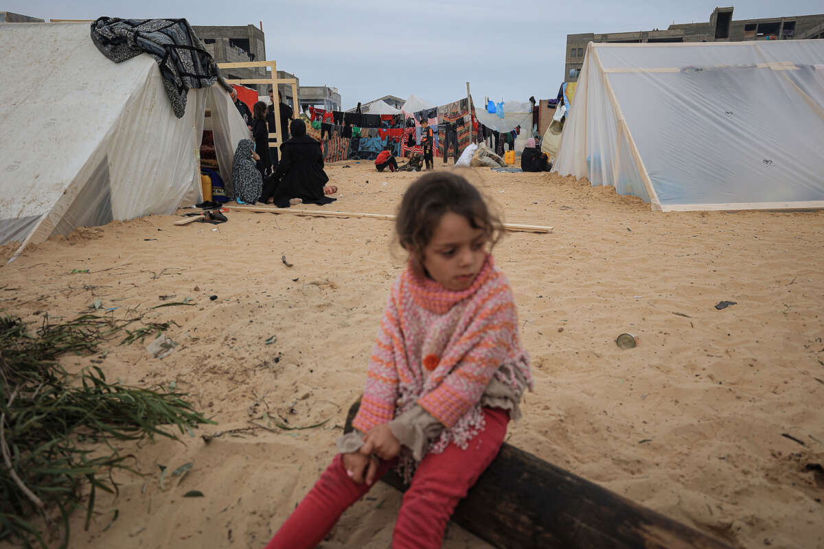 Des familles palestiniennes déplacées vivent sous des tentes dans le quartier Al-Mawasi de Rafah, situé au sud de la bande de Gaza et près de la frontière avec l'Égypte, le 7 décembre 2023. LOAY AYYOUB / FOR THE WASHINGTON POST VIA GETTY IMAGES