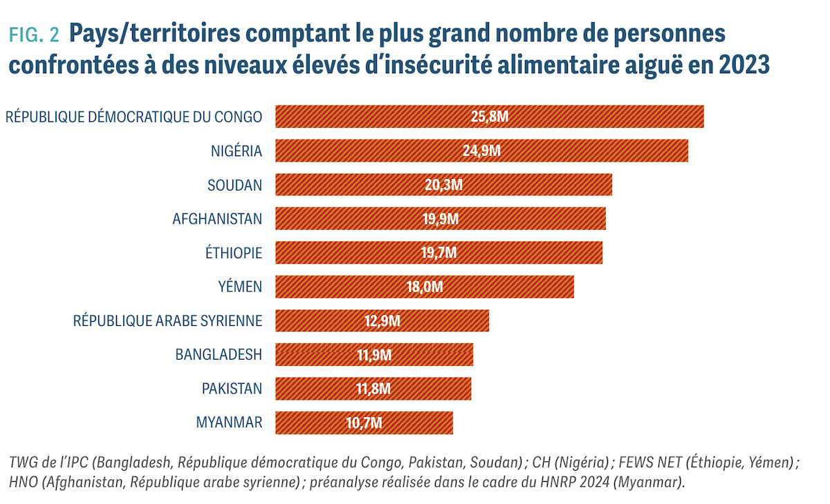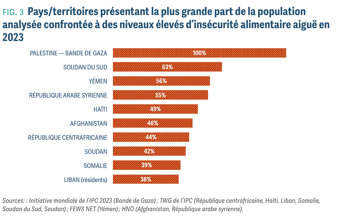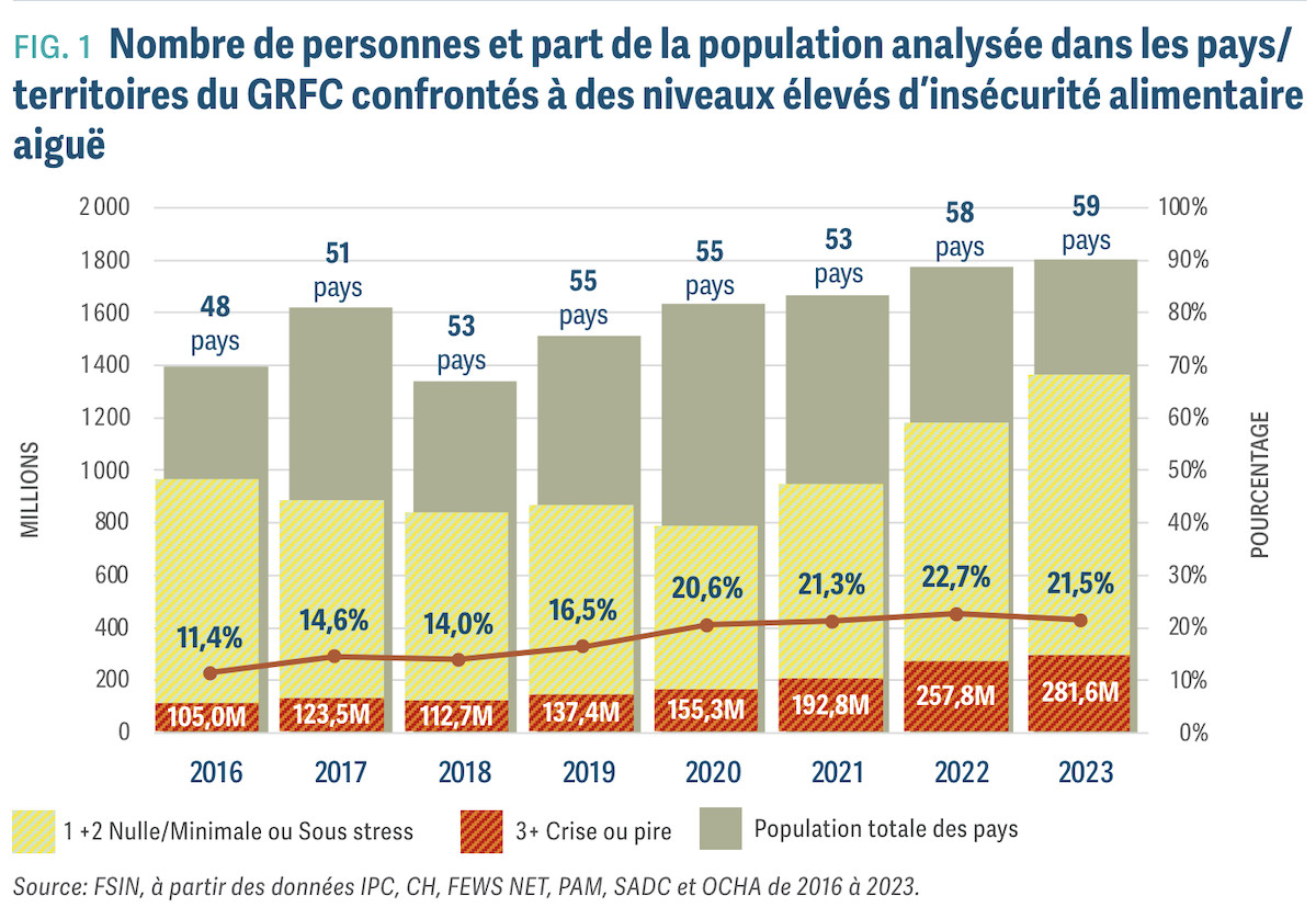 « Dans un monde d'abondance, les enfants meurent de faim », constate amèrement António Guterres, secrétaire général des Nations Unies, pour qui ce nouveau rapport sur les crises alimentaires mondiales « dresse un bilan des échecs humains ». Et pour cause : près de 282 millions de personnes, répartis dans 59 pays et territoires, ont connu des niveaux élevés de faim aiguë en 2023, soit une augmentation mondiale de 24 millions par rapport à l'année précédente.