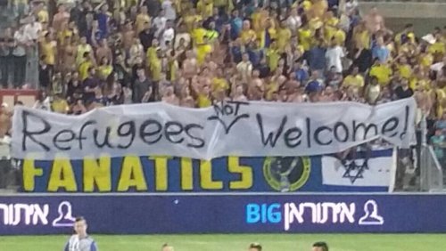 Les joueurs du Maccabi Tel Aviv se sont aussi opposés régulièrement aux réfugiés « Réfugiés pas bienvenus »