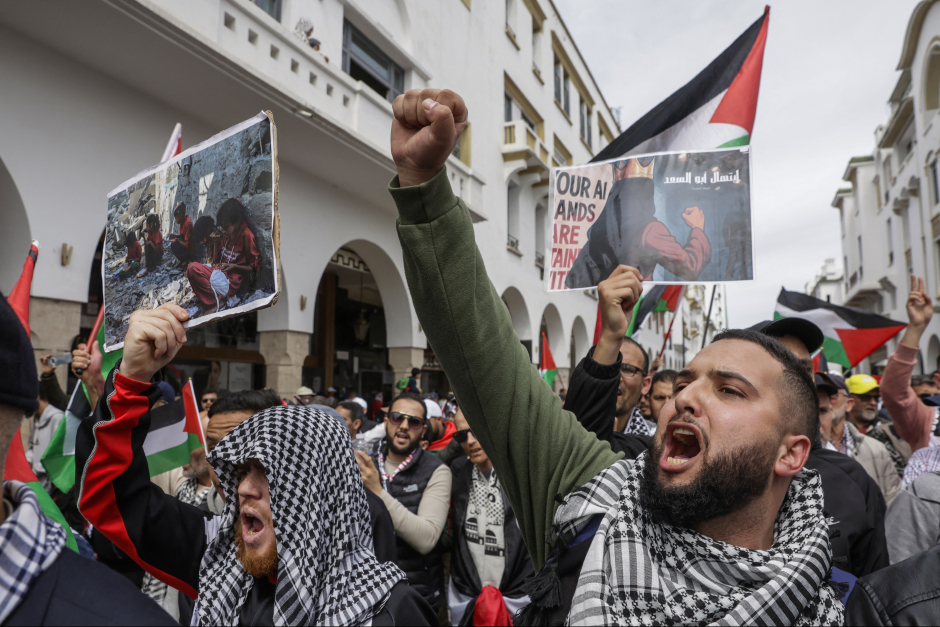 Lors d'une marche nationale en soutien aux Palestiniens et contre la normalisation des liens entre le Maroc et Israël (AFP)