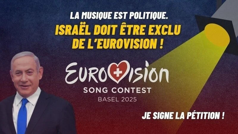 Nous lançons un appel solennel à l'UER et à ses représentantes françaises : ne fermez pas les yeux sur le génocide en cours. N'offrez pas une scène à un État qui bombarde, affame et détruit le vivant. Refusez la participation d'Israël à l'Eurovision 2025.