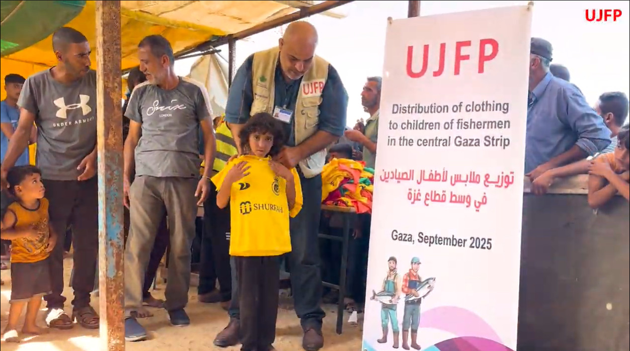 L'UJFP n'a pas tardé à répondre à ces appels. Le 17 septembre, ses équipes sur le terrain ont lancé une distribution de 600 pièces de vêtements aux enfants de pêcheurs dans le centre de Gaza. Le lieu choisi pour la distribution fut la plage de Deir al-Balah, où des centaines de pêcheurs et leurs enfants attendaient avec impatience un rare moment de joie au milieu de l'obscurité qui les entoure.