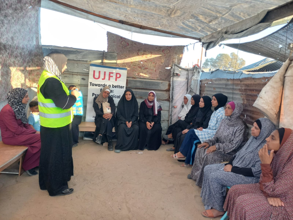 C'est dans ce contexte qu'est intervenue l'équipe de l'UJFP, apportant une lueur d'espoir à travers l'organisation d'un atelier novateur dont le but est d'aider les femmes déplacées à redécouvrir l'importance du soin de soi. La rencontre n'était pas une simple session ponctuelle, mais un espace sûr qui a permis à 20 femmes - mères, travailleuses et jeunes - d'exprimer leurs souffrances et de réfléchir à des solutions simples pour retrouver un certain équilibre dans un quotidien saturé de défis.