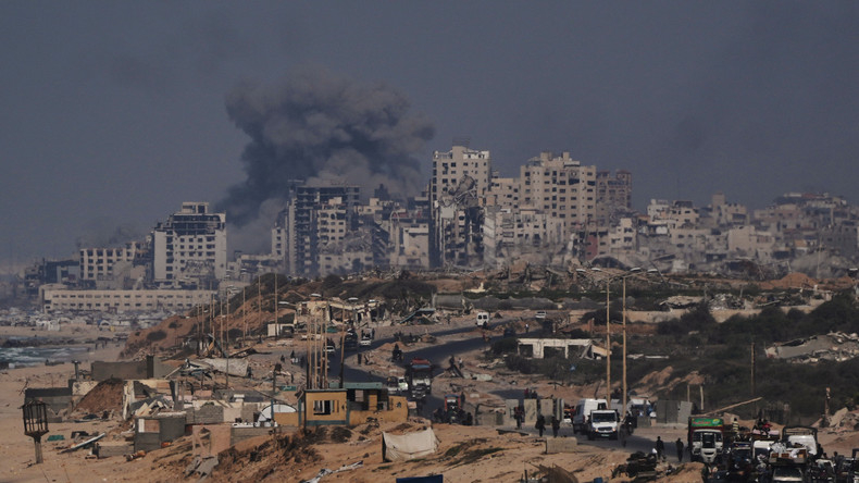 De la fumée s'élève suite à une frappe militaire israélienne dans la ville de Gaza, vue depuis le centre de la bande de Gaza, le 26 septembre.