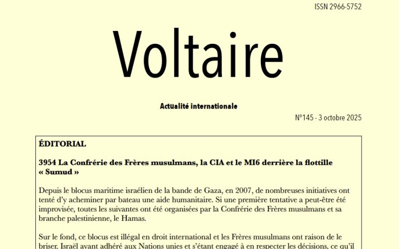 Outre ce site internet gratuit, nous publions une lettre confidentielle en PDF, Voltaire, actualité internationale. Chaque jeudi soir ou vendredi matin, vous recevrez un lien de téléchargement vers la parution de la semaine.