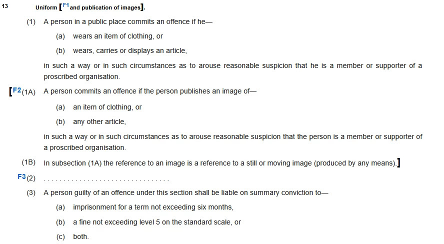Voici la partie pertinente de l'article 13 de la loi sur le terrorisme.