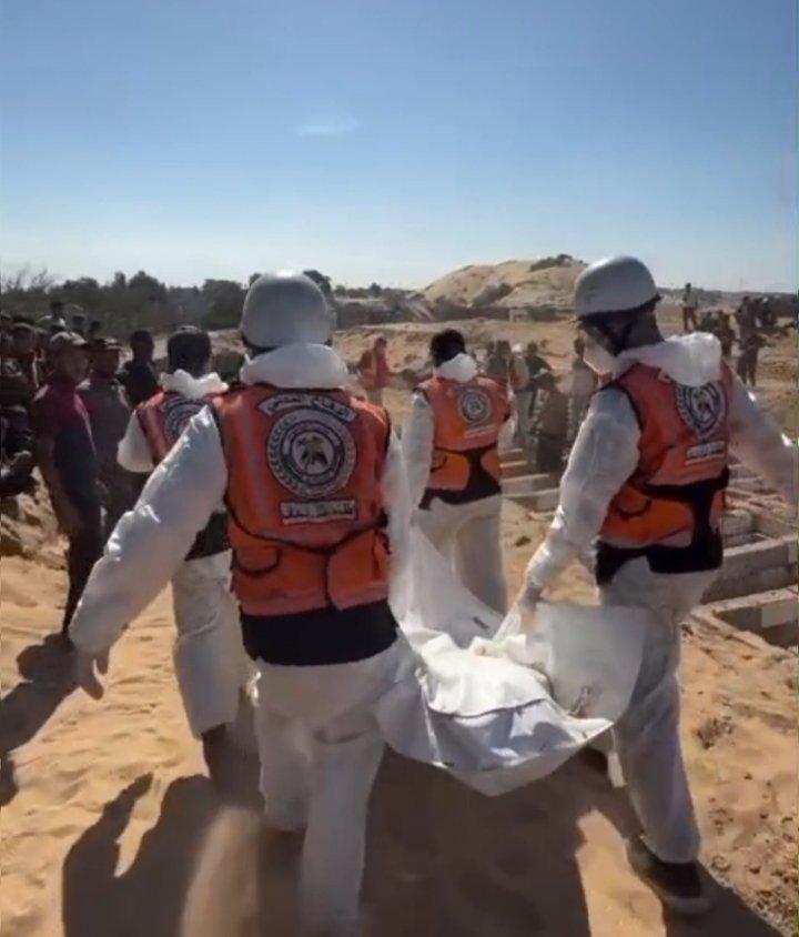« J'ai été témoin de l'une des scènes les plus déchirantes de ma vie. Des corps ont été enterrés sans que leur identité soit connue, sans que personne ne puisse leur dire adieu ni leur offrir une dernière prière de paix » déclare, Mahmoud Basal, porte-parole de la Défense civile, qui participe à l'enterrement dans un cimetière commun de 41 corps, non identifiés de Palestiniens tués et restitués sans nom ni aucune autre indication par Israël.