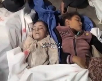 Devant l'hôpital des martyrs d'Al-Aqsa, des familles se sont rassemblées ce matin pour faire leurs adieux à leurs proches tués lors des horribles massacres israéliens de la nuit.