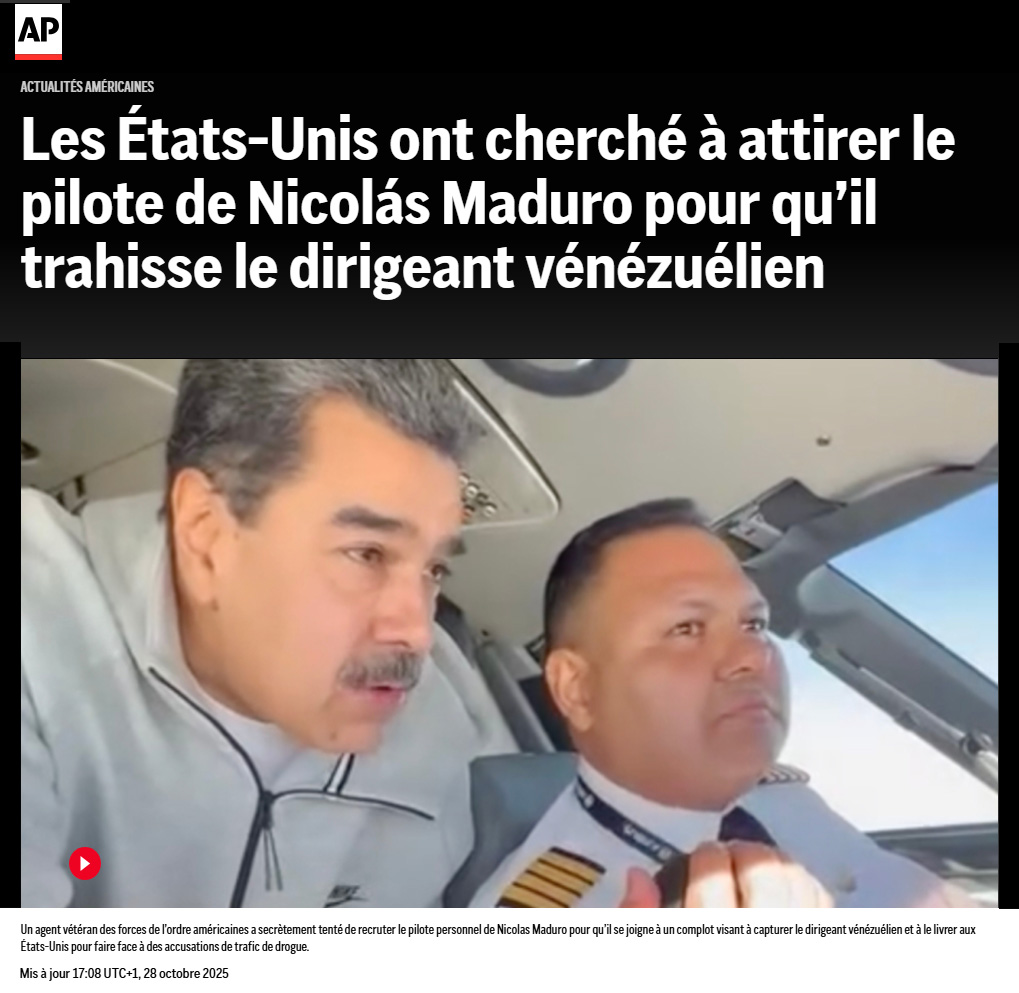 L'Associated Press révèle un complot américain visant à recruter le pilote du président vénézuélien Nicolás Maduro dans le but de l'enlever.