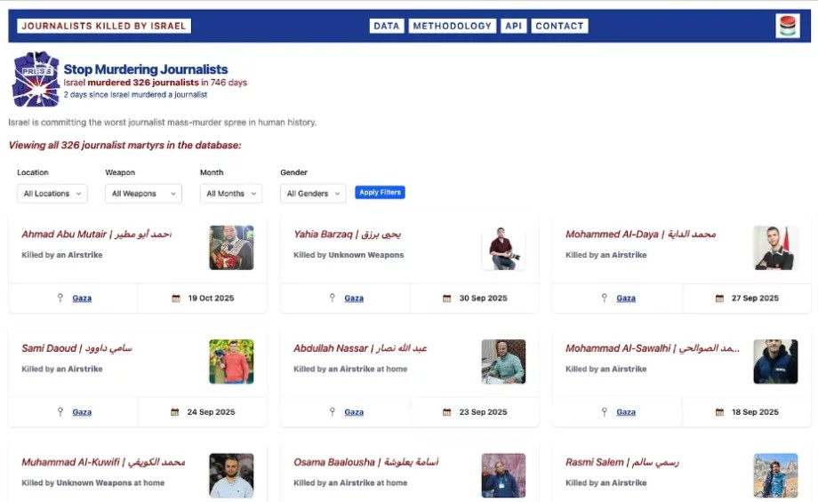 « Cela peut sembler étrange de parler d'« archivage », mais nous construisons des mémoriaux pour les journalistes assassinés par Israël », a déclaré ZO (pseudonyme, abréviation de Zionism Observer), fondateur de Databases for Palestine, lors d'un appel téléphonique le 8 août. « Et si nous faisons cela, c'est parce que nous pensons qu'il n'existe pas de base de données honnête en anglais. »