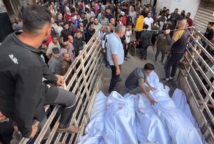 Des funérailles collectives ont été organisées, rassemblant des centaines de personnes dans les rues pour prier pour la famille Abu Dalal et d'autres, dont les corps, enveloppés dans des sacs mortuaires blancs, étaient empilés sur des camions.