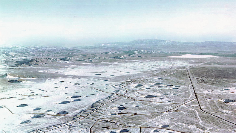 Le paysage du site d'essais nucléaires du Nevada en 1995