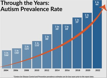 Une étude publiée le 15 avril 2025 par la CDC indique le risque d'autisme est passé de 1 sur 150 pour les enfants nés en 1992 à 1 sur 36 pour ceux nés en 2012 et atteint près d'un enfant sur 31 en 2025.