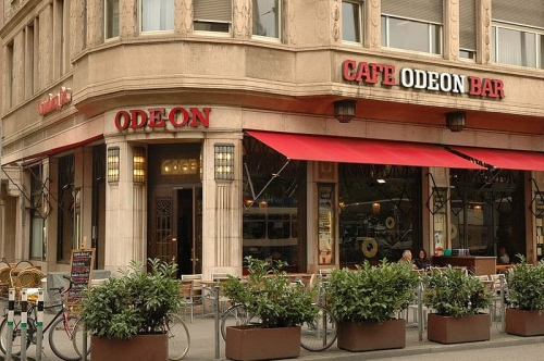 Y avait-il encore d'autres établissements fréquentés par Joyce ? La réponse était évidente: un lieu central où je passe si souvent. Le Café Bar Odeon est un classique de Zurich, ouvert en 1911, dans le style Art Nouveau, qui a vu passer écrivains, poètes, peintres, musiciens, politiciens, scientifiques, car c'était un point de rencontre en ville. Parmi les noms les plus connus qui y sont venus, on compte Stefan Zweig, Somerset Maugham, Hermann Hesse ou James Joyce. Mais aussi Arturo Toscanini, Albert Einstein, Lénine et Benito Mussolini. Ici, se rassemblaient les dadaïstes, et au premier étage, Mata Hari s'est produite, deux ans avant d'être exécutée en France pour espionnage. Aujourd'hui, c'est un lieu historique mais vivant, dont le charme résiste au passage du temps.