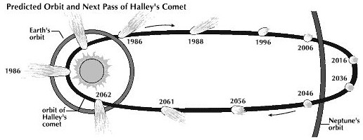 (image 2) - La trajectoire de la comète de Halley autour de notre système solaire :