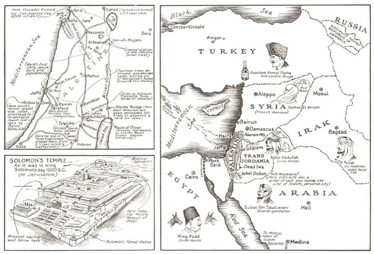 Carte extraite d'un article du magazine TIME de 1929 intitulé " content.time.com" (L'islam contre Israël), même si, comme le montre clairement la carte, Israël n'existait pas encore en 1929. Image © TIME