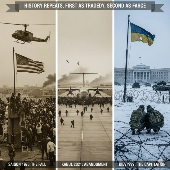 De Saigon en 1975 à Kaboul en 2021 en passant par Kiev en 2026, le scénario est le même. Les États-Unis vont trop loin, découvrent les limites de leur capacité d'action, sous-traitent les combats à des mandataires, puis négocient des solutions de retrait dont l'objectif premier est d'éviter que l'histoire se souvienne d'un président en exercice comme de celui qui a "perdu" la guerre.