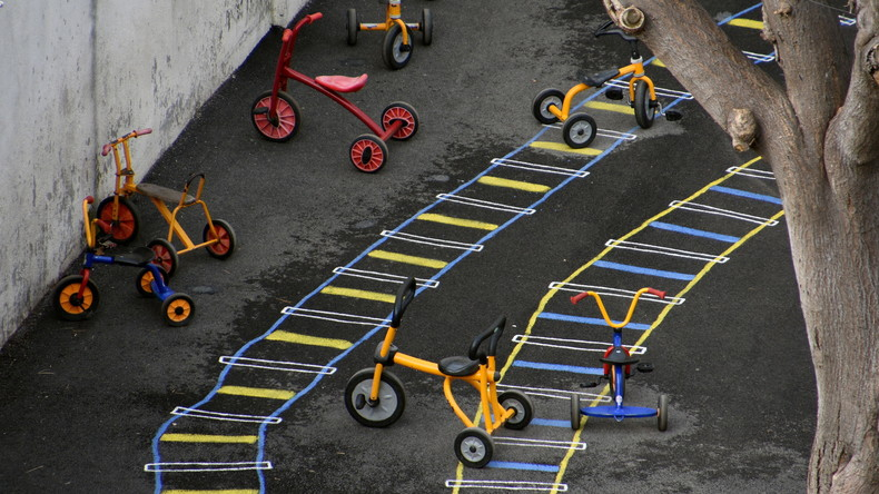 Des tricycles d'enfants dans la cour d'une école maternelle déserte, à Marseille [Photo d'illustration].