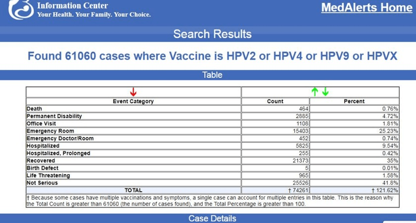 Selon le National Vaccine Information Center, plusieurs dizaines de milliers de complications ont été rapportées après la vaccination Gardasil. La liste des accidents possibles est d'ailleurs détaillée dans les publications officielles du CDC (29) et les publications du The National Network for Immunization. (30)