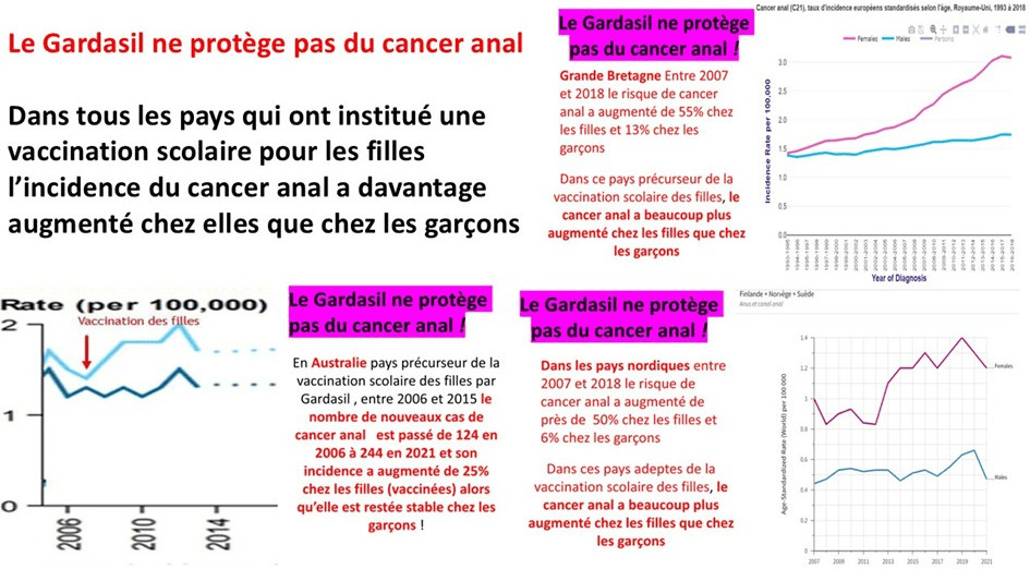 Les relevés des registres nationaux des cancers montrent depuis la vaccination scolaire une augmentation de l'incidence des cancers anaux plus importante chez les filles pourtant vaccinées que chez les garçons.