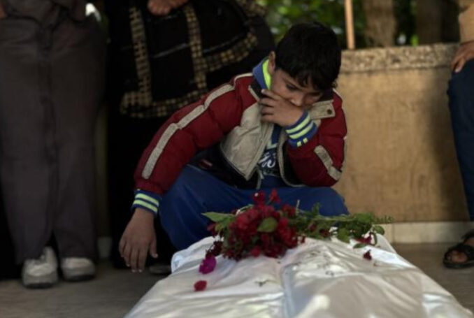 26 novembre 2025, complexe médical Nasser, Khan Yunis, au sud de la bande de Gaza - La famille Al-Qahouji enterre l'un de ses fils tué lors d'un bombardement israélien. Une cérémonie d'adieu a eu lieu à l'intérieur de l'hôpital, avant que le corps ne soit transféré vers son lieu de repos définitif. Le complexe médical Nasser continue de recevoir un grand nombre de morts et de blessés à la suite des opérations israéliennes en cours dans toute la bande de Gaza. Selon le ministère de la Santé de Gaza, plus de 300 Palestiniens ont été assassinés par les forces israéliennes depuis l'entrée en vigueur du soit-disant accord de « cessez-le-feu » le 10 octobre - Photo : Doaa Albaz / Activestills