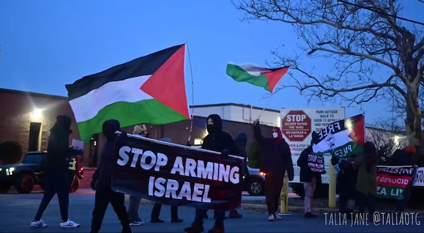 Des militants anti-génocide ont manifesté devant G&B Packing, un entrepôt du New Jersey qui expédie chaque semaine plus de mille tonnes de matériel militaire vers Israël.