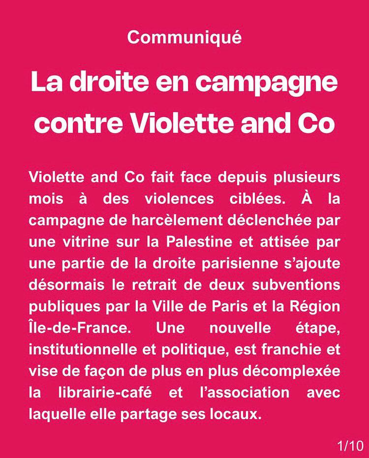 C'est le cas, notamment, de la librairie Violette and Co., mise en cause pour avoir mis en vitrine un livre de coloriages intitulé « From the River to the Sea ».
