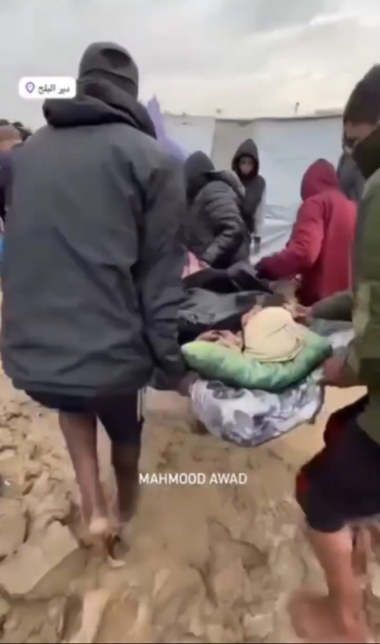 Des morts et des blessés liés au froid glacial, aux pluies torrentielles, et à l'absence d'abris décents, en raison des destructions massives israélienne et du blocage de l'aide humanitaire. Des restes d'immeubles s'écroulent sur des familles, des bébés et des personnes âgées ne résistent pas à l'hypothermie.