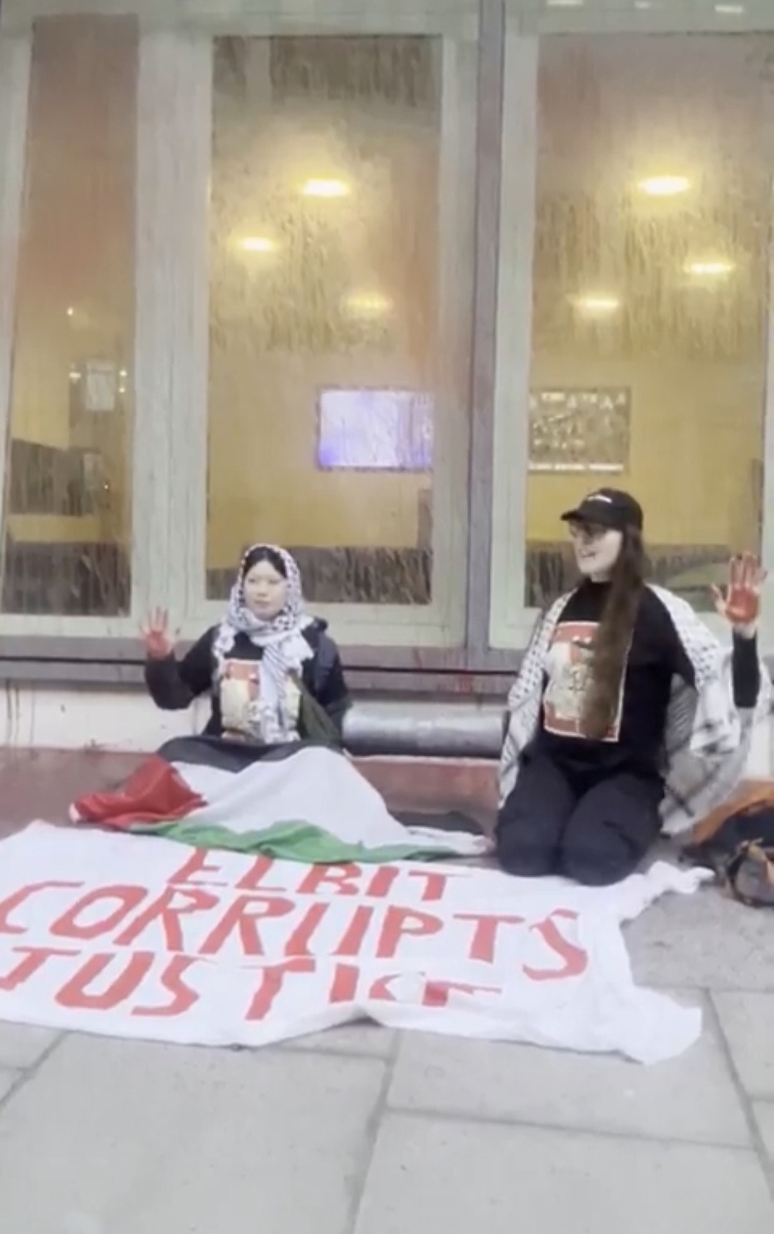 Le ministère britannique de la Justice a été aspergé de peinture rouge en signe de solidarité avec les grévistes de la faim. Aujourd'hui marque le 40e jour de la grève collective menée par huit prisonniers incarcérés pour avoir réclamé une Palestine libre.