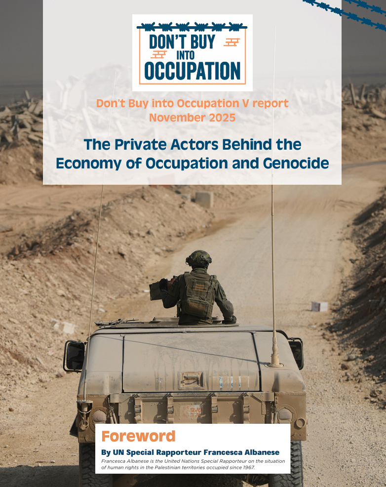 Francesca Albanese a préfacé le rapport de la coalition « Don't Buy Into Occupation » (Ne financez pas l'occupation) qui identifie 104 entreprises mondiales impliquées dans l'occupation et le génocide