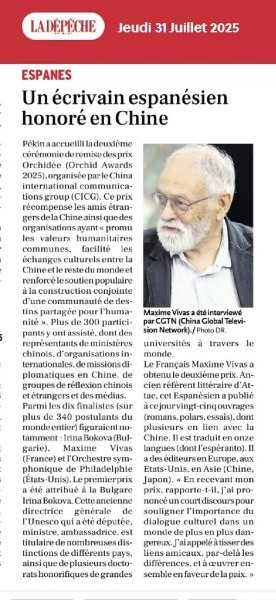 Au mois de juillet 2025, Irina Bokova (Bulgarie) ex-directrice de l'UNESCO et l'Orchestre symphonique de Philadelphie (Etats-Unis) n'avaient pas tiqué en me côtoyant à Pékin, pour recevoir avec moi un des trois premiers « Orchid awards » qui récompensent des organisations ou personnes étrangères qui ont oeuvré pour le rapprochement culturel entre les peuples. Cet événement international était connu jusqu'à Montgiscard, petit village au sud de Toulouse, l'édition locale de La Dépêche du Midi y ayant consacré un article.