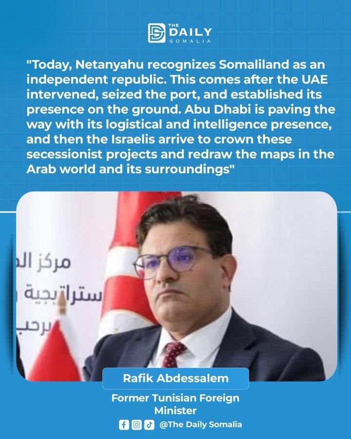 L'ancien ministre tunisien des Affaires étrangères a qualifié la reconnaissance du Somaliland de manœuvre orchestrée par les Émirats arabes unis pour garantir à Israël une base capable de frapper le Yémen.