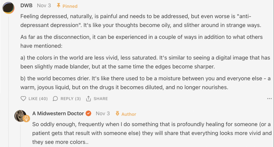 In time, I began to hear stories of people describing how their experience of life was deadened, often in a manner not too different from how the drugs "numb" your sexuality. Some of the common stories included: