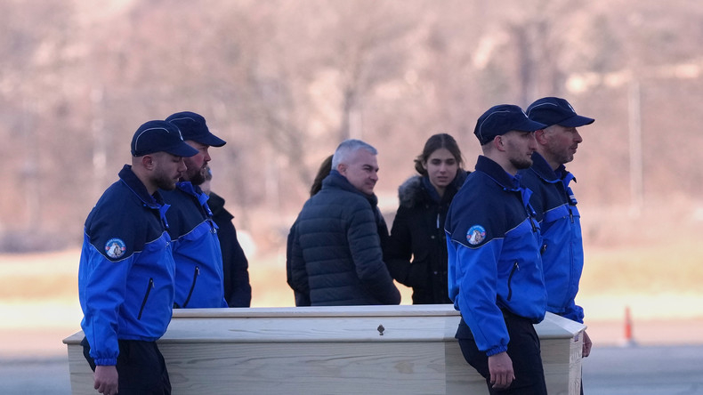 Des policiers transportent un cercueil à l'aéroport militaire de Sion, après l'incendie du bar Le Constellation à Crans-Montana, le 5 janvier 2026. [Photo d'illustration]