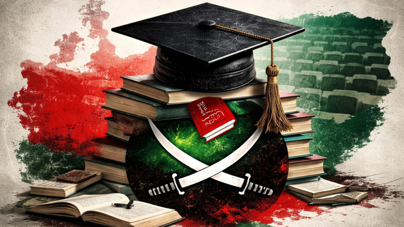 Mortier de diplômé posé sur l'emblème du mouvement des Frères musulmans.