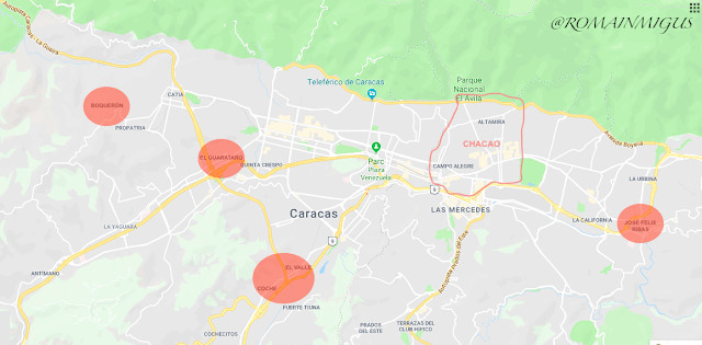 A Caracas, les guarimbas ont eu lieu essentiellement dans l'arrondissement huppé de Chacao, situé à l'est de la ville. A cheval sur trois axes principaux qui relient l'est et l'ouest de la capitale, cet arrondissement coupe de fait la capitale en deux. Il est aussi le poumon économique et financier du pays.