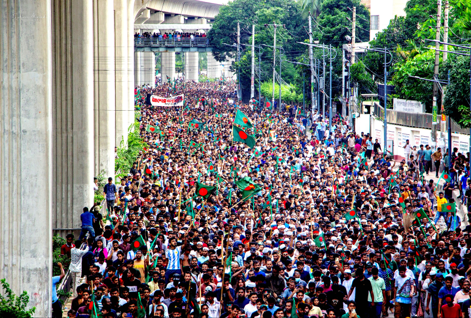Protesters hold victory march after Sheikh Hasina's resignation on Aug. 5, 2024. (Rayhan9d, Wikimedia Commons, CC BY-SA 4.0)